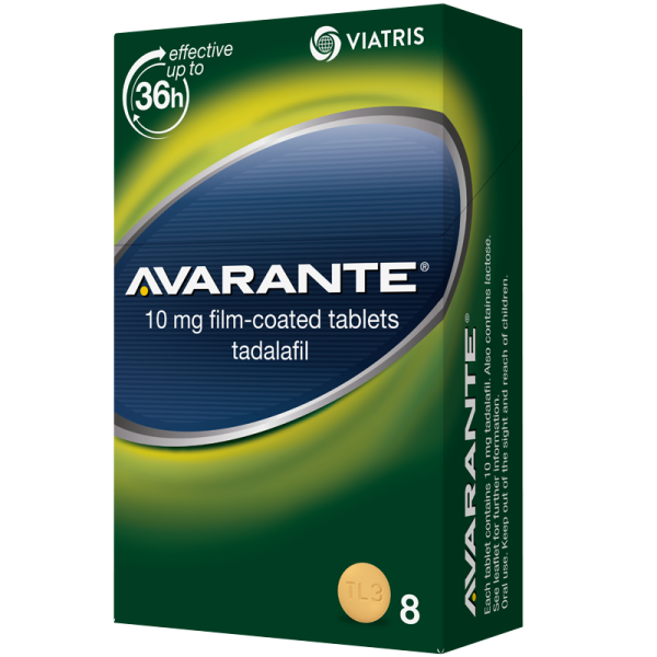 Avarante 10mg Tadalafil Tablets contain tadalafil, a medicine used to treat erectile dysfunction (ED) in adult men — a condition where a man is unable to get or keep an erection firm enough for sexual activity. This pack contains 8 tablets, designed to be taken as needed before sexual activity.