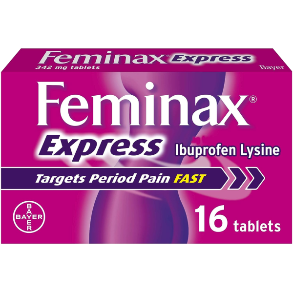 Feminax Express 342mg Tablets contain ibuprofen lysine, a fast-acting pain reliever specially formulated to help relieve the painful cramps, backache, and discomfort associated with period pain (dysmenorrhoea).
