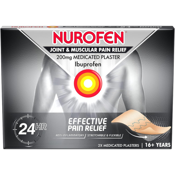 Nurofen Joint & Muscular Pain Relief 200mg Medicated Plasters contain ibuprofen and are designed to provide targeted, localised relief from joint and muscular pain, backache, rheumatic pain, and stiffness. They are applied directly to the skin over the affected area, delivering the active ingredient where it is needed most.