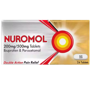 Nuromol Dual Action Pain Relief Tablets contain two active ingredients — ibuprofen and paracetamol — to provide effective relief from mild to moderate pain, including headaches, toothache, period pain, backache, muscular aches, and the symptoms of cold and flu.