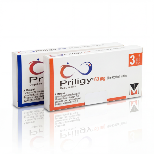 Priligy is the original branded treatment for premature ejaculation, manufactured by A. Menarini. It contains the active ingredient dapoxetine, a short-acting selective serotonin reuptake inhibitor (SSRI) specifically developed for on-demand use before sexual activity.